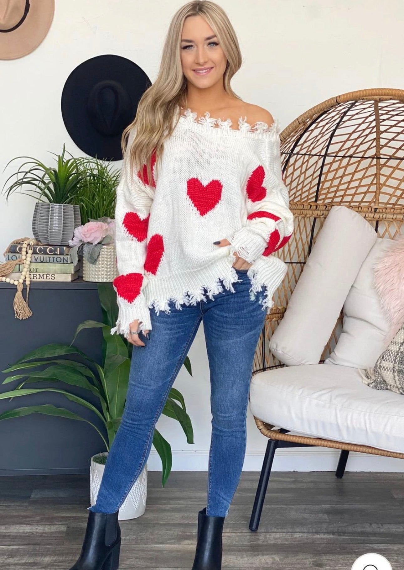 El amor más leal será siempre contigo misma! Y para celebrarlo trajimos esta versión de suéter simétrico, que rompe las reglas, diferente, encantador y auténtico como tu. Con detalle de corazones a contraste en material de punto suave y calientito. La talla es compartida CH-M y M-G, un MUST no sólo de San Valentín, sino también en invierno.