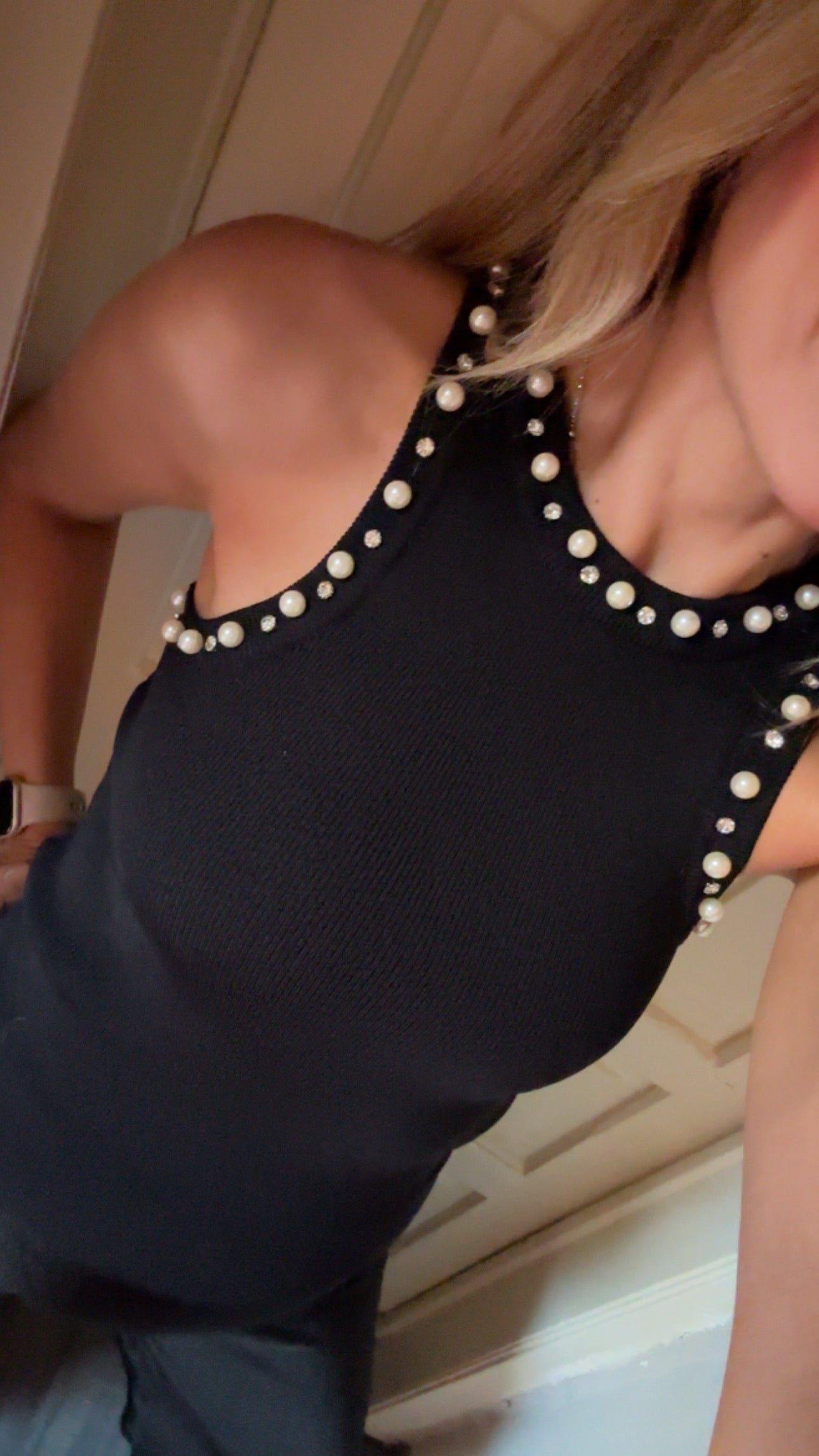 Porque hasta tus básicos necesitan verse diferntes! Top básico de cuello redondo y tirantes gruesos, manga tipo sisa, con aplicaciones de perlas (no vienen pegadas, vienen engrapadas, te recomiendo lavarla a mano). Material strech, pídela en tu talla.